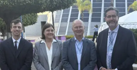 President Sylvester, on the right. with the presidents of Catholic universities of Lille (Patrick Scauflaire) and Milan (Elena Beccalli) and IFCU head of members (Nicolas Vergier). The four presented on a panel together in Guadalajara.