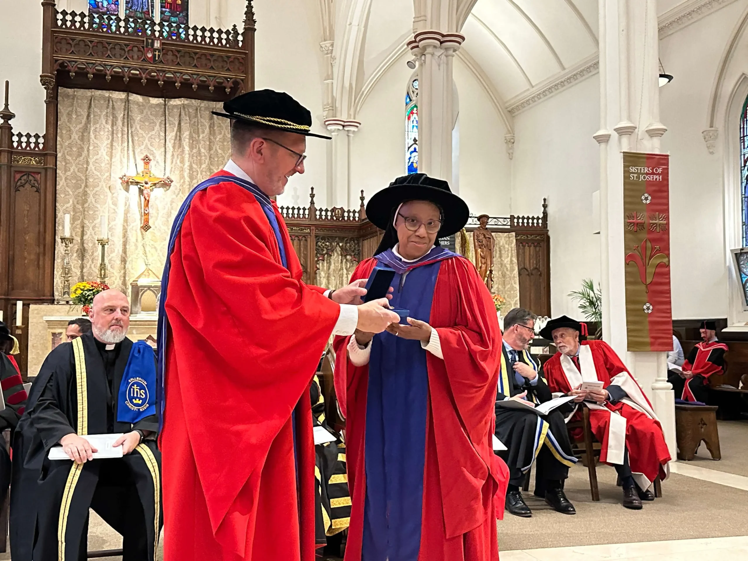 Sr. Carla received her medal at the inaugural convocation for the Regis St. Michael’s Faculty of Theology, held Saturday, Nov. 8, in St. Basil’s Church.