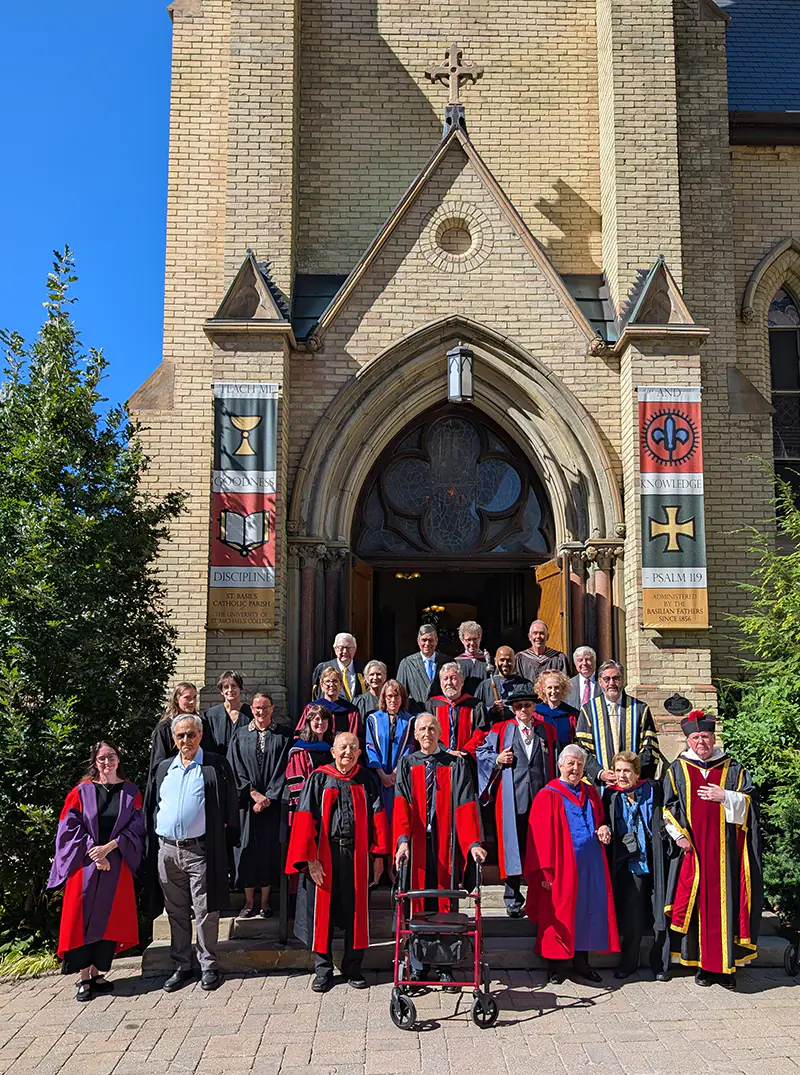 As part of the Michaelmas festivities, two new honorees were added to St. Michael’s Legacy Wall. Distinguished historian and former USMC Principal Professor Mark McGowan was inducted to the legacy wall along with distinguished alumna Sr. Evanne Hunter, IBVM. Mark McGowan is renowned for his work on the history of Toronto, Canadian Catholicism, the Irish Famine and Diaspora, and the Irish in Canada. Sr. Evanne is a former Collegium member and has worked tirelessly for the Institute of the Blessed Virgin Mary for well over fifty years, serving as Provincial Superior for Canada, among other important roles. A luncheon for honorees and their guests was held following the Michaelmas Mass.