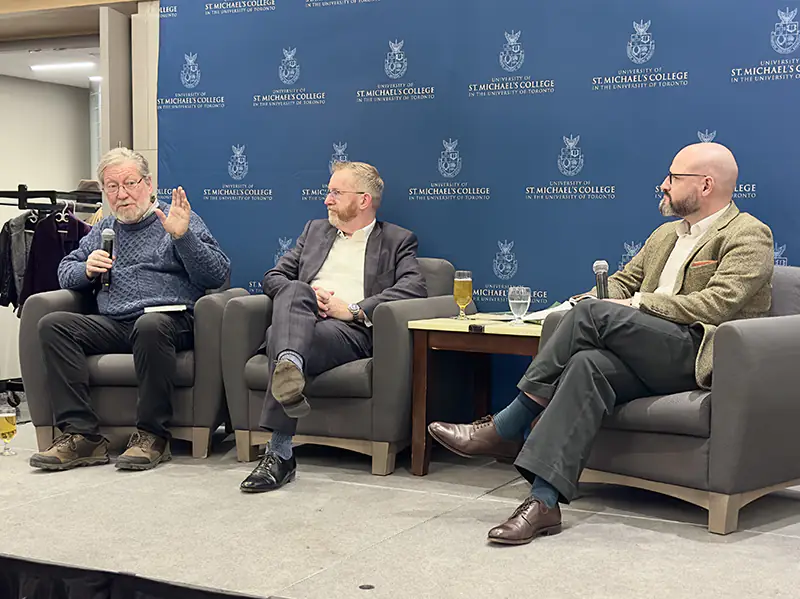 To celebrate the launch of their new book, Fifty Irish Lives in Canada, 1661–2017, authors Drs. Eamonn McKee, former Ambassador of Ireland to Canada, and Mark McGowan, St. Michael’s Professor and Principal Emeritus, discussed the history and collaborative effort behind this project. The book highlights Irish men, women, and children whose lives and contributions helped shape Canada.