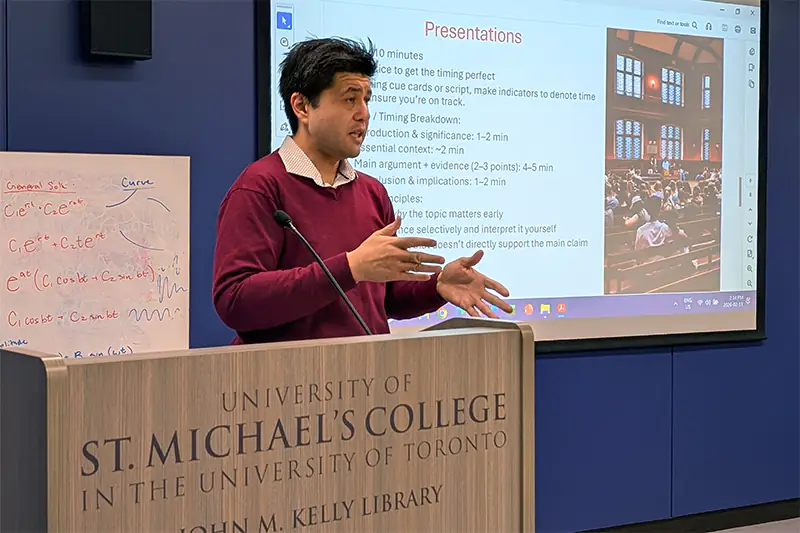 “The event draws attendees not only from St. Michael’s College, but also members of the public and the wider University of Toronto community,” says Morriello. “The result is a series of conversations that might not ordinarily happen, especially between arts-based and science-based research. By bridging these academic divides, the Colloquium fosters a unique intellectual environment where a question from a literature student might spark a breakthrough for a budding physicist. Ultimately, the event celebrates more than just individual achievement; it highlights the power of interdisciplinary curiosity and the vibrant, collaborative spirit that defines the St. Michael’s experience.”