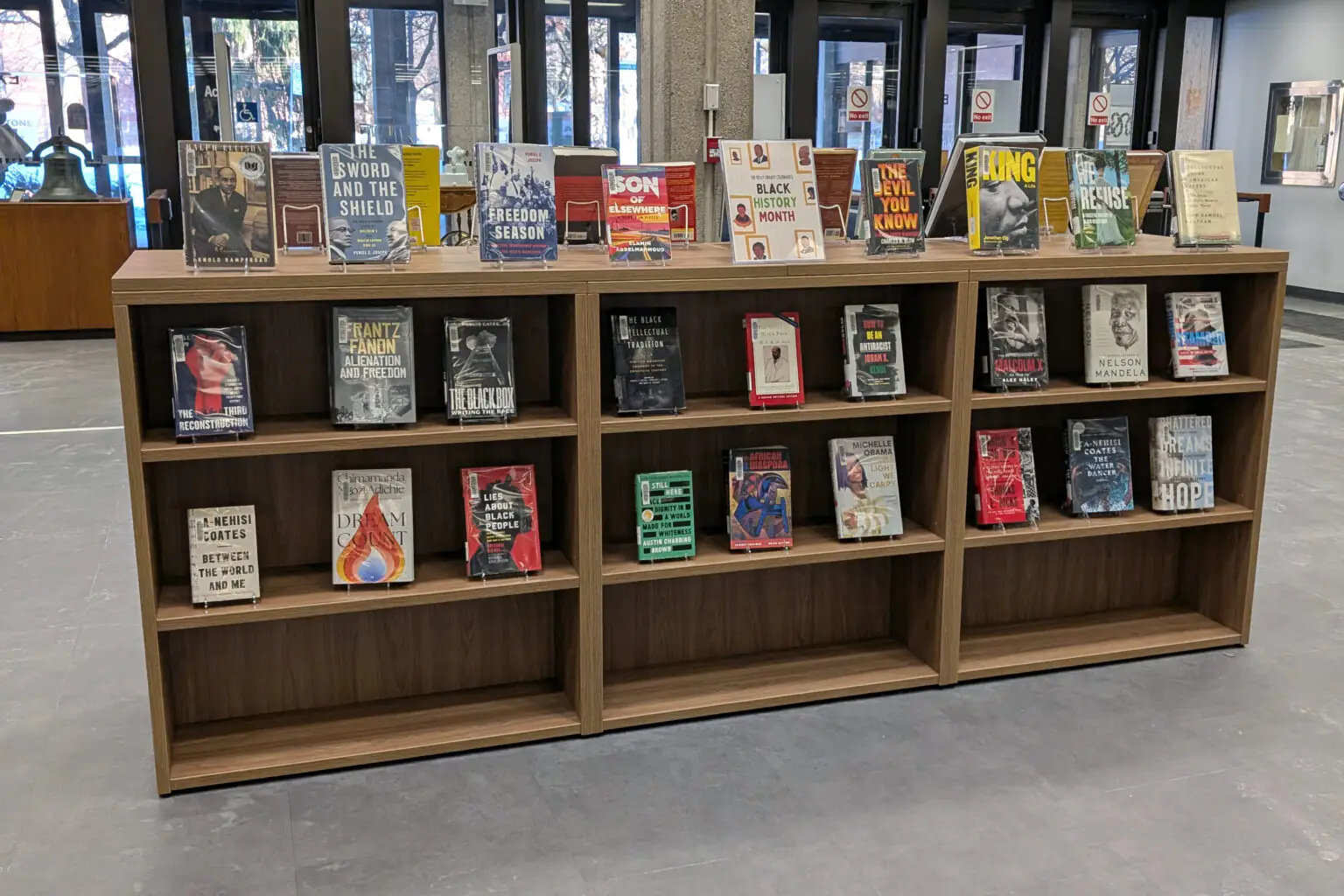 During Black History Month, the Kelly Library curated a book display showcasing the wide range of Black voices and stories represented in its collection. The display featured novels by acclaimed authors such as Toni Morrison, biographies of civil rights leaders, and contemporary memoirs reflecting Black life today.