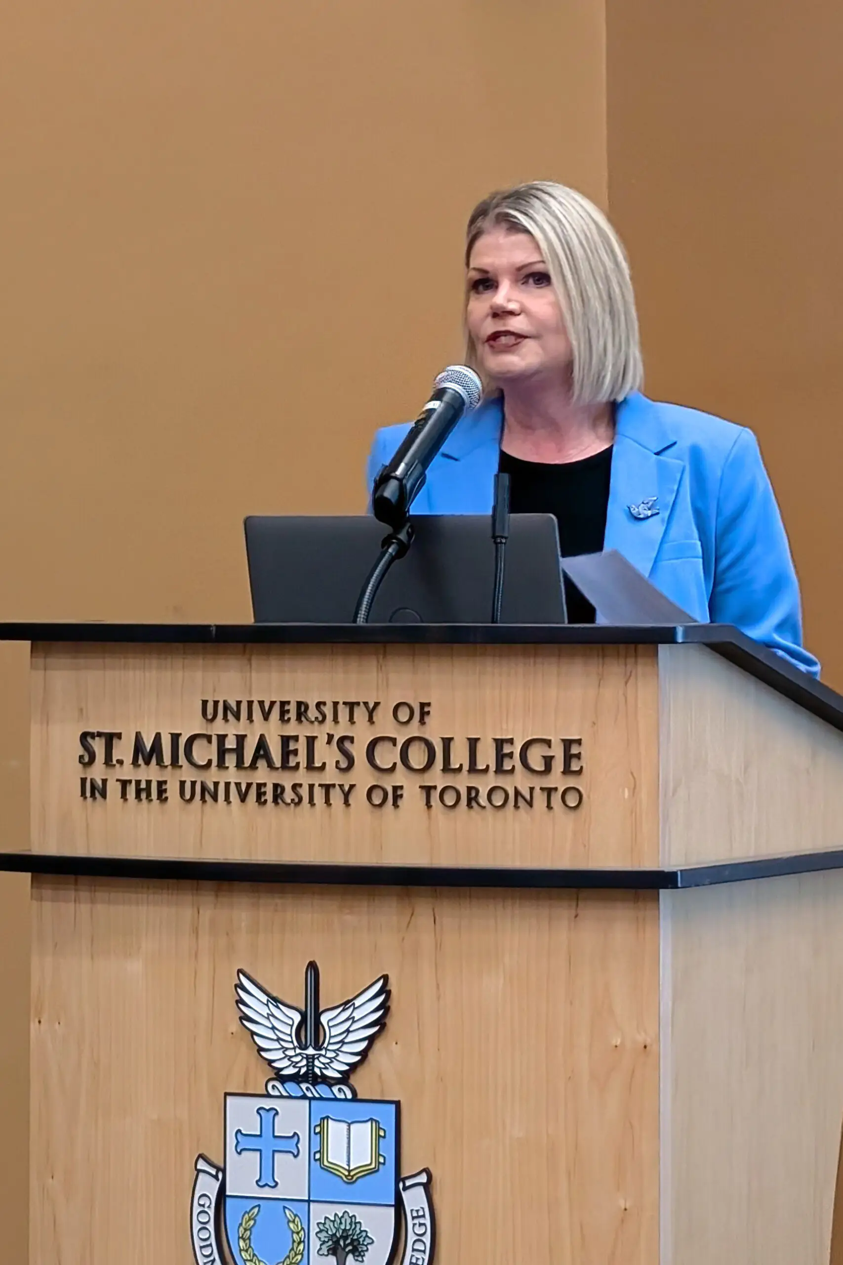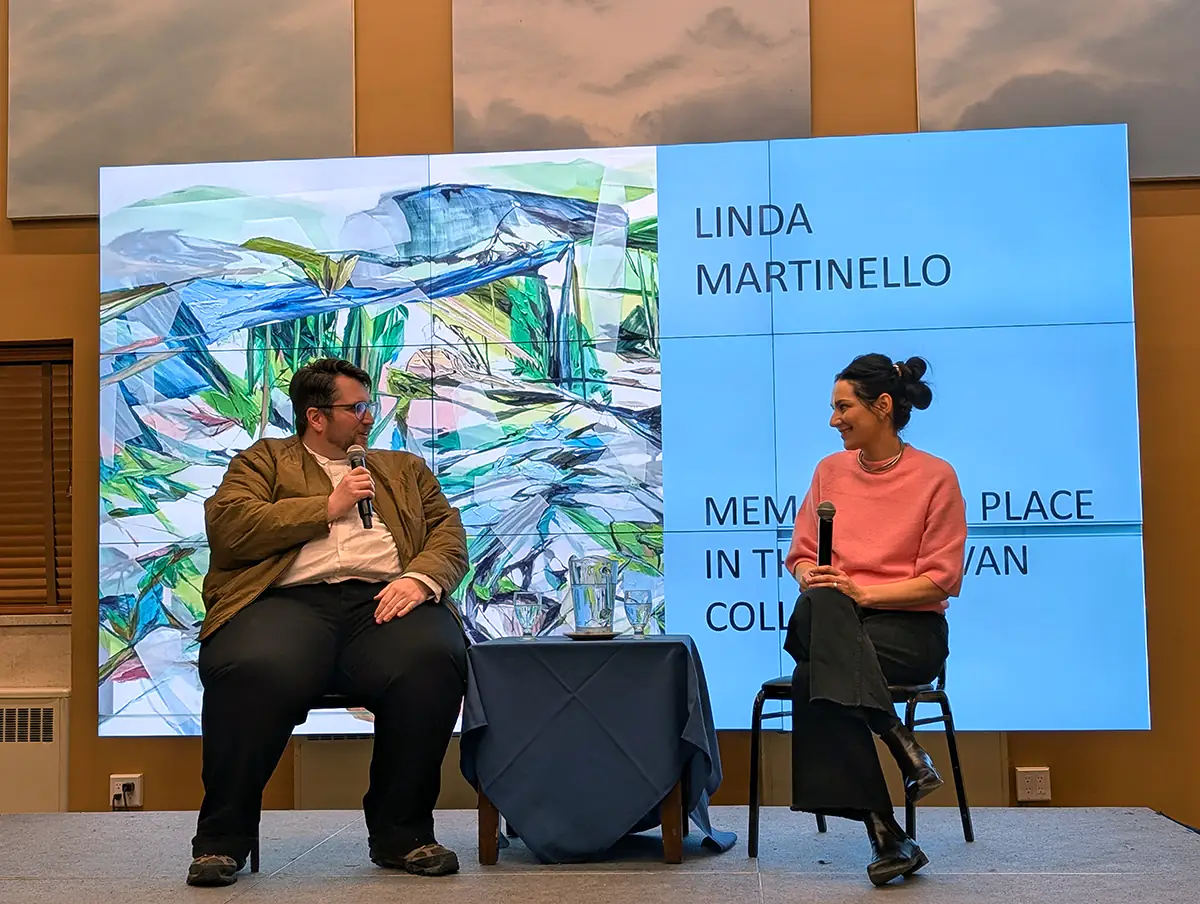 The conversation was the centrepiece of an evening hosted by the Donovan Collection Committee to increase student engagement with the Donovan Collection at St. Mike’s. Inspired by Martinello’s work, the theme for the evening was “Memory and Place.”