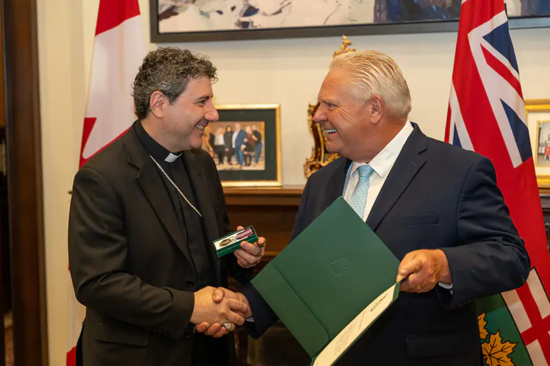 St. Michael’s Chancellor Frank Cardinal Leo was presented with the King Charles III Coronation Medal by Premier Doug Ford. The Coronation Medal was created to mark the Coronation of His Majesty King Charles III, which took place on May 6, 2023 and it is the first Canadian commemorative medal to mark a coronation. The King Charles III Coronation Medal program recognizes 30 000 deserving individuals who have made a significant contribution to Canada or to a particular province, territory, region of, or community in, Canada, or attained an outstanding achievement abroad that brings credit to Canada. Read ‘Frank Cardinal Leo Awarded King Charles III Coronation Medal’.